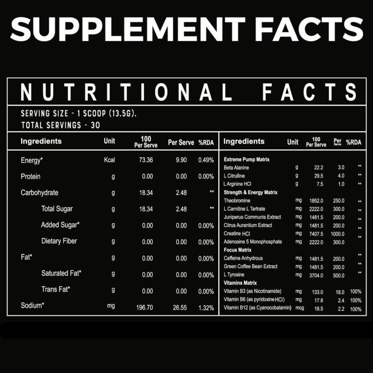 Savage Pre Workout isn’t your ordinary pre-workout; it’s a whole other level of energy, intensity, pump, and focus! Quite possibly the most advanced pre-workout to date for the sole reason that it’s so effective and fast-acting, leaving those other pre-workouts you’ve ever tried in the dust.